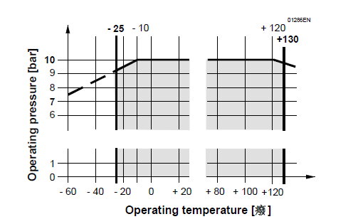 介質(zhì)溫度范圍:−25 ... +130 °C