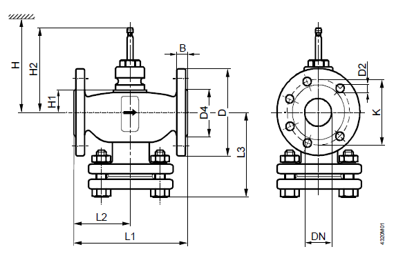 H1 = 從水管中心線到執(zhí)行器安裝邊(上邊緣)的距離