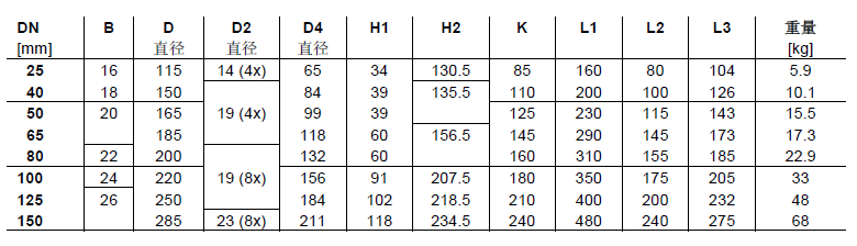 在-25 … +130范圍內(nèi),1000kPa(10bar),符合ISO 7268 / EN 1333 / DIN 4747 / DIN3158標(biāo)準(zhǔn)