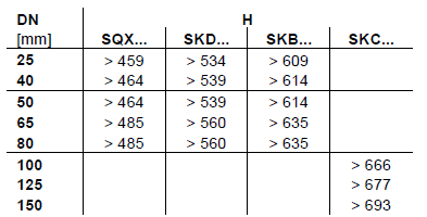 2) Δpmax 和 Δp 值適用于SQX32... / SQX82... 和 SQX62 新執(zhí)行器
