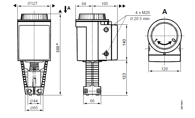 不帶有行程逆變器的執(zhí)行器高度(自閥板開始)ASK50 = 300 mm