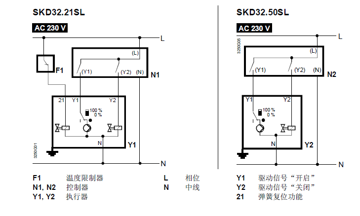 · SKD32..SL:工作電壓為AC230V,三位控制信號