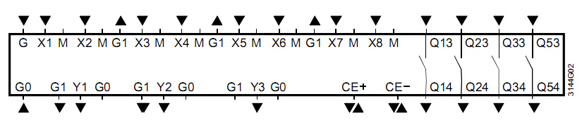 l 在擴(kuò)展模塊之間,或者擴(kuò)展模塊與控制器之間不需要接線。附裝模塊時(shí),自動(dòng)進(jìn)行電氣連接。如果不能并排安排擴(kuò)展模塊,第一個(gè)分離式模塊必連接到最前的模塊,個(gè)或者連接到使用RMZ790模塊接頭的控制器。在這種情況下,累計(jì)的電纜長度不得超過10米。