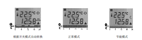 將調(diào)節(jié)運(yùn)行模式選擇開關(guān)撥到位置( )或( ) ,可自動(dòng)或手動(dòng)轉(zhuǎn)換。當(dāng)運(yùn)行模式選擇開關(guān)撥到位置“ ” ,將根據(jù)選擇的開關(guān)模式自動(dòng)轉(zhuǎn)換?蛇x擇一周內(nèi)詳細(xì)的開關(guān)模式。